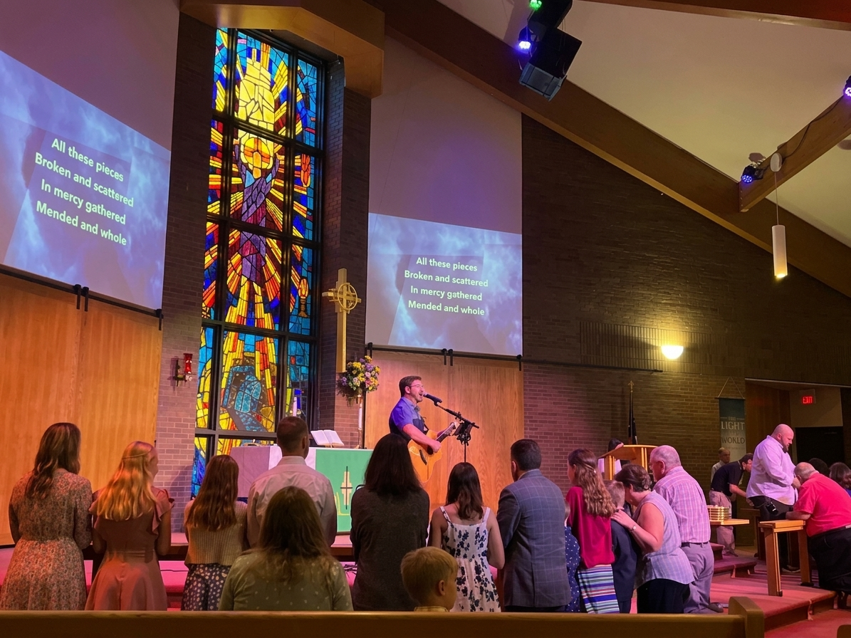 A congregation gathers for worship inside Christ Little Rock Church, reflecting a welcoming community celebrating Easter together. This image represents the invitation to join others in faith, hope, and new life through Christ.